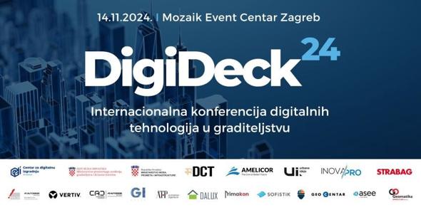 Treće izdanje konferencije digitalnih tehnologija u graditeljstvu DigiDeck24 će se održati 14.11. u Mozaik Event Centru Zagreb s početkom od 09:00h čiji je pokrovitelj Hrvatska komora arhitekata.